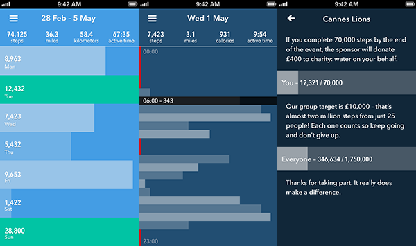 Aplikacja Walk for Water nawiązuje do trendu quantify yourself, a jej zadaniem jest mierzyć kroki pokonywane przez użytkownika każdego dnia i tym samym motywować go do większej aktywności fizycznej.