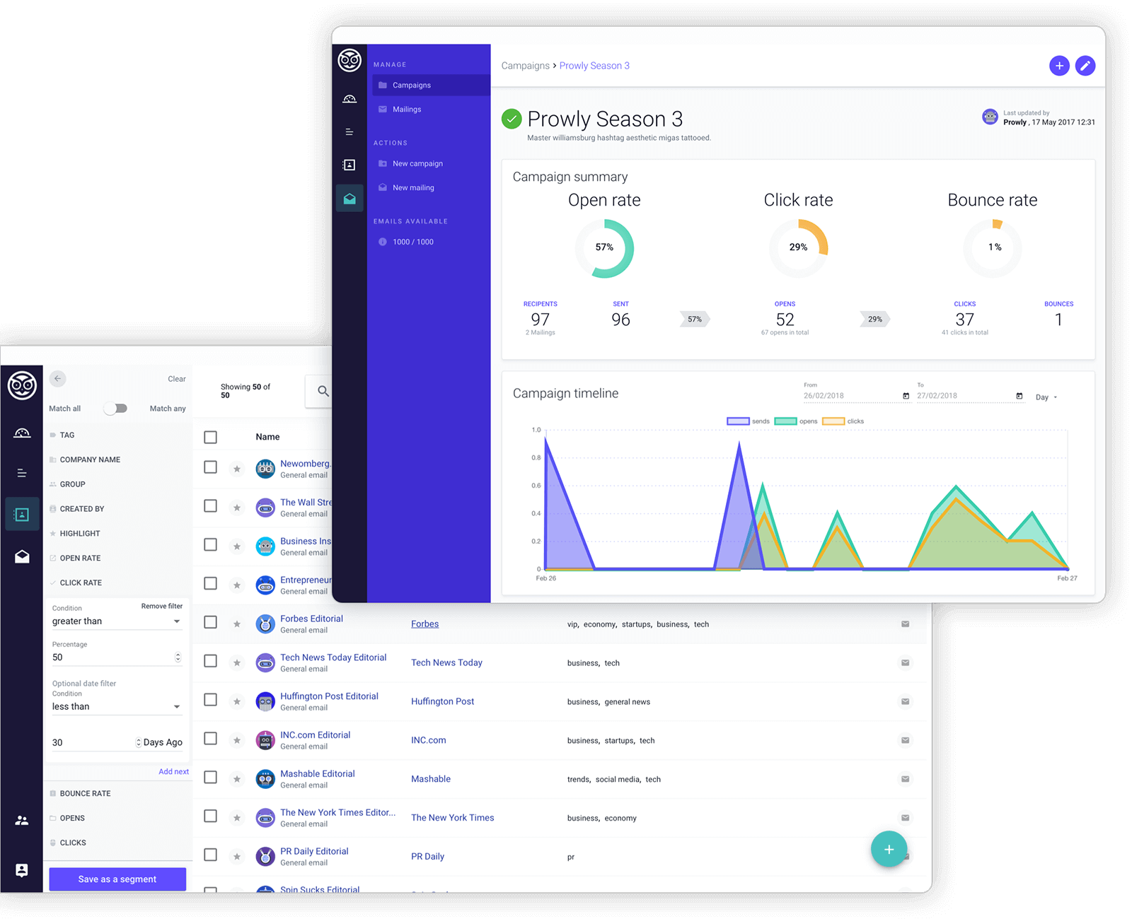 Zmiany pojawiły się też w narzędziach do zarządzania bazami mediów i prowadzenia wysyłek. Użytkownicy mogą prześledzić historię poszczególnych kontaktów i ich reakcje na wysyłane treści. W ten sposób łatwo określimy, którzy dziennikarze chętnie korzystają z przesyłanych materiałów, a którzy – z różnych powodów – nie są nimi zainteresowani. „Wykorzystujemy rozwiązania, które w branży marketingowej są coraz powszechniejsze.” – tłumaczy Joanna Drabent, CEO i współzałożycielka Prowly. „Dzięki takiej technologii, PR-owcy nie muszą już po każdej wysyłce dzwonić do wszystkich dziennikarzy, pytając, czy ją otrzymali. To spora oszczędność czasu i… nerwów. Dla obu stron.”