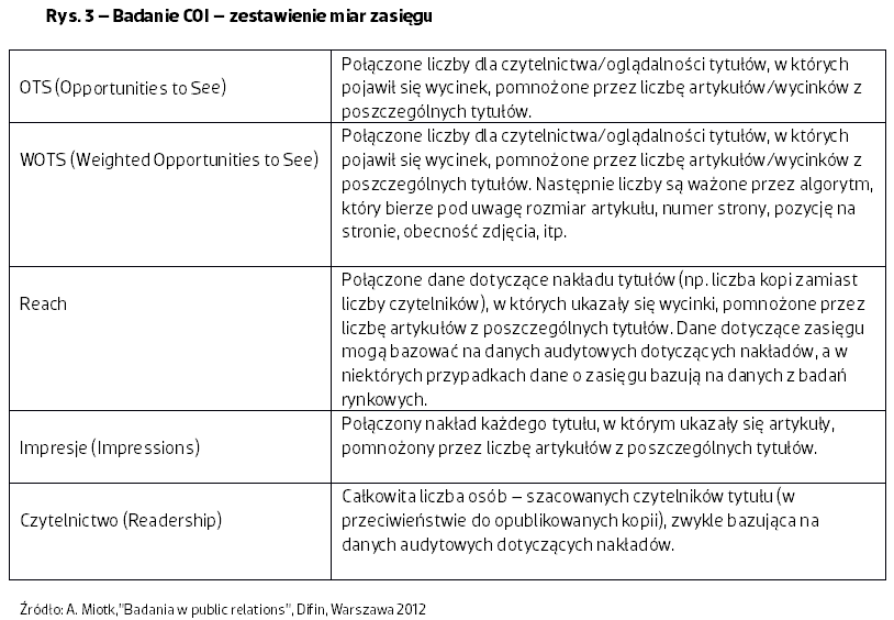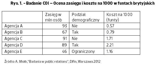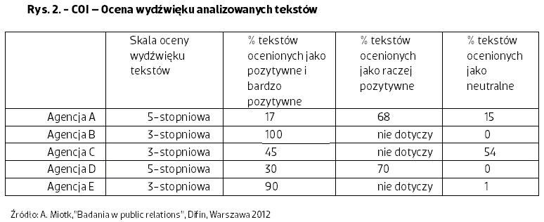 Jednak analiza treści analizie treści nierówna. Po pierwsze, jeśli w branży badań skuteczności działań promocyjnych jakieś pojęcie nazywa się tak samo, niekoniecznie oznacza to samo. Boleśnie przekonał się o tym brytyjski Central Office of Information (COI), wówczas jeszcze funkcjonujący jako odrębna placówka koordynująca działania komunikacyjne brytyjskiego rządu (obecnie jest częścią częścią Government Procurement Service). Placówka w lipcu 2009 r. przeprowadziła ciekawy eksperyment. Instytucja rozesłała brief z załączoną próbką 138 artykułów prasowych do pięciu firm monitorujących media. Organizacja chciała się dowiedzieć, do ilu osób dotarł dany tekst, jaki był koszt dotarcia na 1000 i jaki był wydźwięk tekstu. Efektem było pięć różnych zestawów z wynikami, a wyniki w poszczególnych kategoriach analizy bardzo mocno różniły się między sobą.