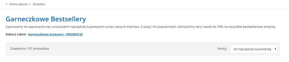 Kategoria najlepiej sprzedających się produktów to doskonała wskazówka dla klientów sklepu. Szczególnie tych, którzy znaleźli się na nim po raz pierwszy i nie wiedzą, co dokładnie oferuje. Jeśli sklep posiada szeroką gamę produktów, przejrzenie choćby połowy z nich w trakcie jednej wizyty jest trudne do wykonania. Taka kategoria przyciągnie do najpopularniejszych produktów i może skłonić do zakupu.