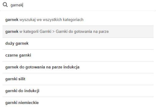 Wyszukiwarka musi znajdować się w łatwo dostępnym i widocznym miejscu i oferować podpowiedzi ułatwiające odnalezienie poszukiwanych produktów.