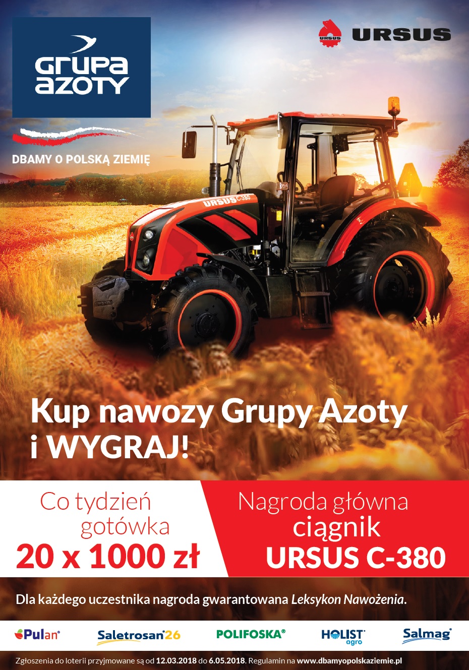 Grupa Azoty, największy koncern chemiczny w Polsce, łączy siły z naczelnym polskim producentem ciągników i maszyn rolniczych – Ursusem. Wszystko po to, aby docenić swoich klientów i dać im szansę na wygranie atrakcyjnych nagród.