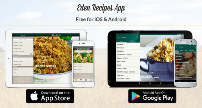 Aplikacja na smartfony stworzona przez Eden Foods z przepisami do wykorzystania na różne okazje i pory dnia.