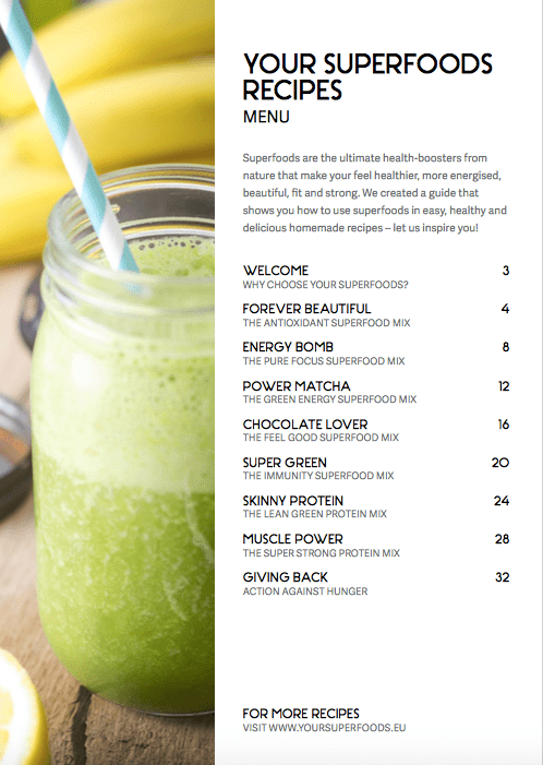 E-book marki Your Super Foods z przepisami wykorzystującymi produkty typu superfoods sprzedawane przez firmę.