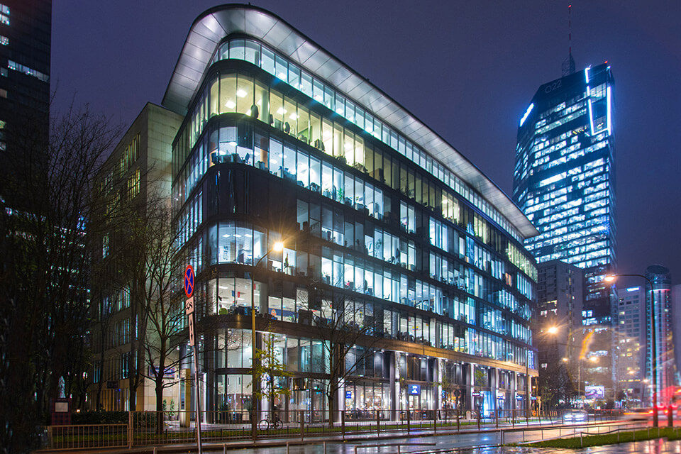 To tutaj, nieopodal lotniska Chopina, od prawie pół roku znajduje się centrala firmy oraz międzynarodowy lotniczy terminal kurierski DHL Express. W biurowcu, w którym funkcjonują kierownictwo, działy administracyjno-operacyjne i agencja celna, pracuje około 100 osób. Wspólna dla pracowników i kurierów kantyna, codziennie serwuje dania zimne i ciepłe, w tym wegetariańskie, no i desery. Biuro zaaranżowane w przestrzeni open space posiada wyznaczone strefy do pracy, spotkań, rozmów, relaksu, czy spożywania posiłków. Zastosowane w nim funkcjonalne rozwiązania pozwalają na swobodną organizację miejsca pracy, zarówno w strefie cichej, jak i w zespołach. Dostosowanie do własnych potrzeb systemów meblowych – takich jak fotele, stoliki, sofy, poczekalnie, pufy, czy budki telefoniczne – nie stanowi najmniejszego problemu.