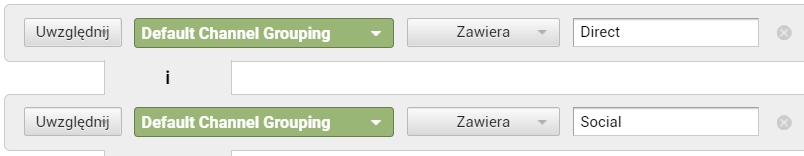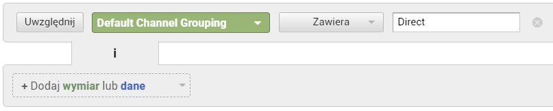 Aby otrzymać dane dla kanału Direct, możemy filtr skonfigurować w następujący sposób: