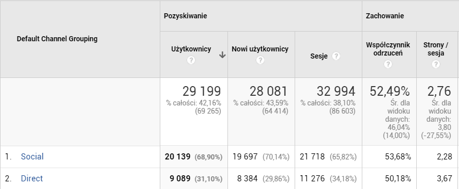 Jako rezultat otrzymujemy wyfiltrowane dane, zawierające tylko kanał Direct. Proste, prawda?