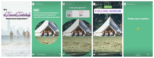 Firma Airbnb, aby zachęcić internautów do podróżowania i zainspirować ich do odwiedzania nowych miejsc, wykorzystała funkcję interaktywnych quizów na Instagram Stories. Seria Airbnb Travel Tuesday wykorzystywała profesjonalne zdjęcia i treści tworzone przez użytkowników na Instagramie, które opatrzone odpowiednim filtrem i pytaniem, co to za miejsce, skutecznie wzbudzała zaangażowanie. Po ujawnieniu widzowie byli proszeni o „przesunięcie palcem”, aby aktywować wbudowany link, kierujący ich na stronę firmy. Prosty pomysł wykorzystujący element zabawy i z pewnością bardziej skuteczny w generowaniu kliknięć niż nie jeden standardowy post czy reklama. Na żywo możecie zobaczyć stories w wyróżnionych na profilu firmy na Instagramie.