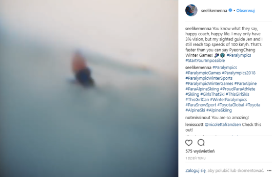 Podczas trwania zimowych Igrzysk Olimpijskich, Toyota uruchomiła specjalne konto na Instagramie @SeeLikeMenna, które zabiera ludzi w świat widziany oczami 18-letniej brytyjskiej paraolimpijki Menny Fitzpatrick.