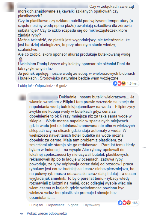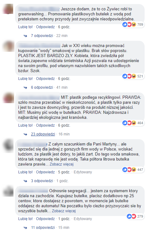 W komentarzach pod wpisem o plastiku widoczne jest rozżalenie, że ktoś, kogo się ceniło, zawiódł zaufanie „Ja czuję się przez Panią nabrana”. Komentujący zarzucają Martynie Wojciechowskiej fałsz, hipokryzję, działanie dla pieniędzy, brak wiarygodności. Nie dziwi mnie to, bowiem najbardziej aktywną w mediach społecznościowych generacją jest pokolenie millenialsów, szczególnie wyczulone na fałsz czy nieuczciwość i dobitnie wyrażające swoje niezadowolenie, gdy ma choć cień podejrzenia, że ktoś usiłuje nimi manipulować. Przekonała się o tym marka Reserved przy okazji kampanii #polskichlopak.