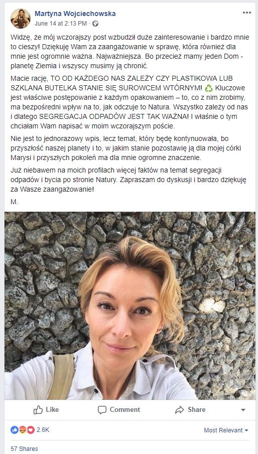 Wpis na profilu Martyny Wojciechowskiej (przez ponad 10 lat redaktor naczelnej National Geographic Polska) rozmija się z tym przekazem, co więcej – jest sprzeczny z wizerunkiem, jaki przez lata zbudowała, a to wywołało u fanów dysonans poznawczy.