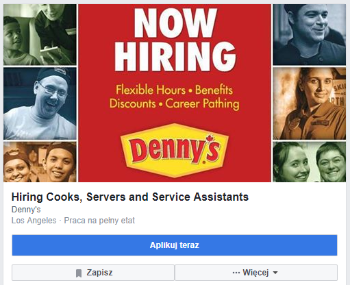 Najważniejszą chyba zaletą posta z ogłoszeniem pracy jest możliwość promowania go. Masz dostępne pełne możliwości Facebooka, możesz więc precyzyjnie dotrzeć do osób, których szukasz. Warto zastanowić się nad zawężeniem maksymalnie opcji targetowania, podając jak najwięcej danych odnośnie grupy docelowej. W ten sposób ograniczysz sobie liczbę zgłoszeń niedopasowanych do twoich wymagań i zwiększysz szansę, że wartościowi dla ciebie kandydaci zobaczą ogłoszenie.