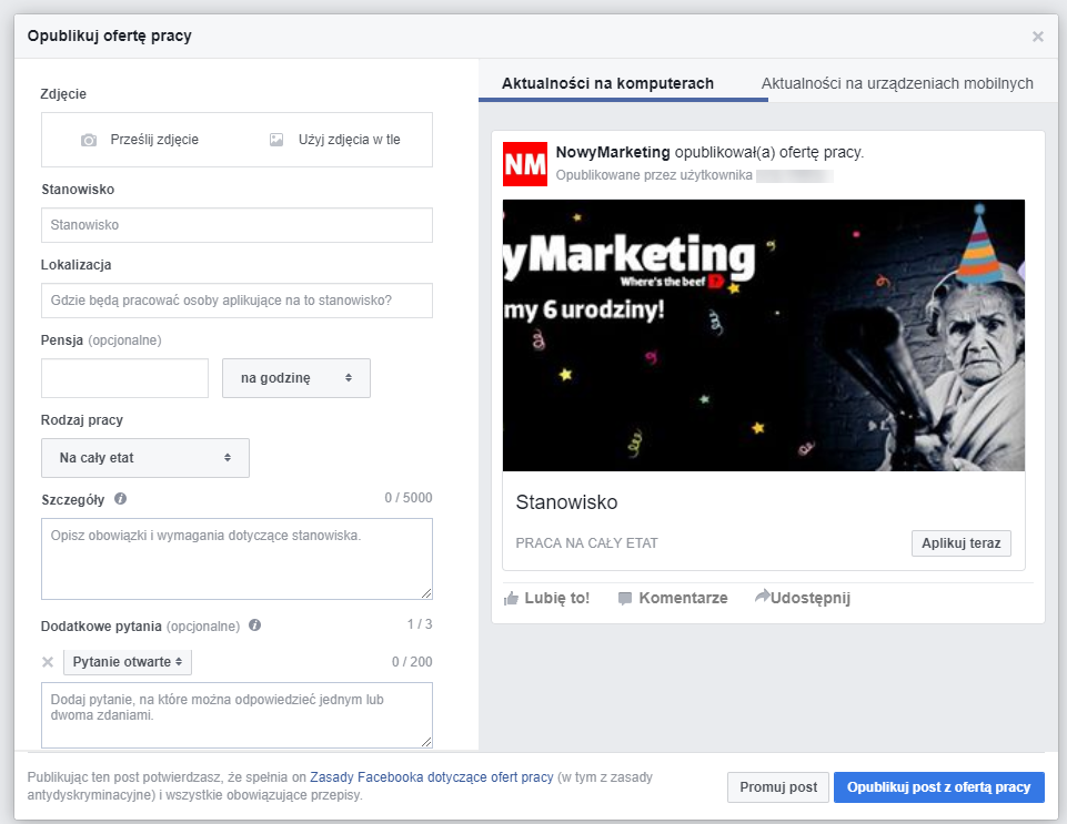 Co jeszcze możesz zrobić z ofertą pracy na Facebooku?