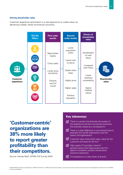 Dbałość o budowanie pozytywnych interakcji z klientami jest szczególnie istotna dla wiodących firm, ponieważ jest silnie powiązana z przychodami tych organizacji. Wyniki badania KPMG wskazują, że wzrost przychodów 50 najwyżej ocenionych przez konsumentów marek jest większy o 54% niż firm, których doświadczenia klienckie zostały ocenione najniżej w zestawieniu.