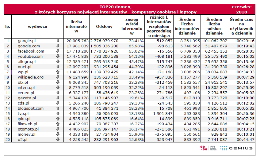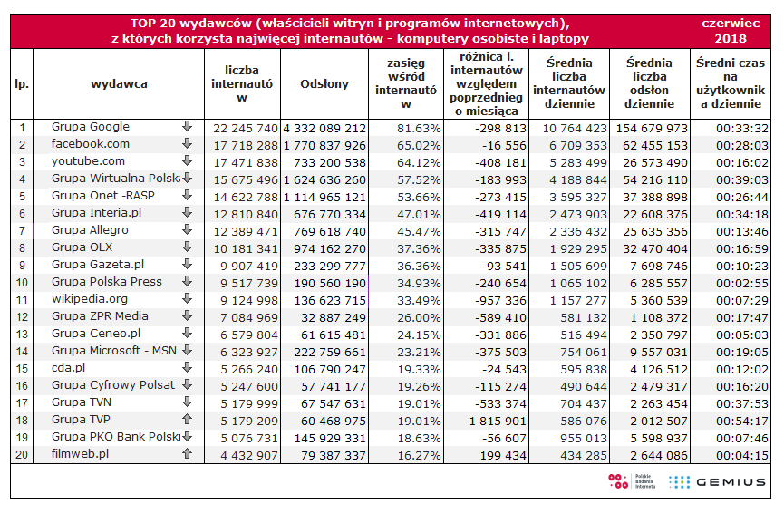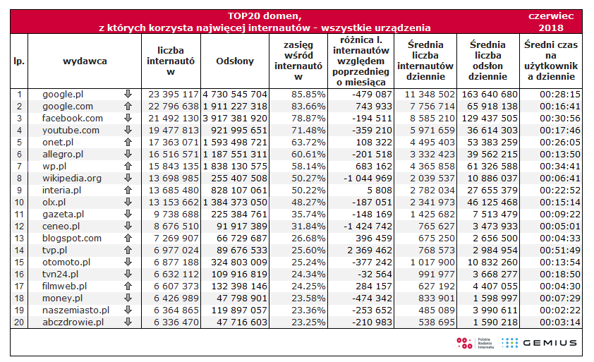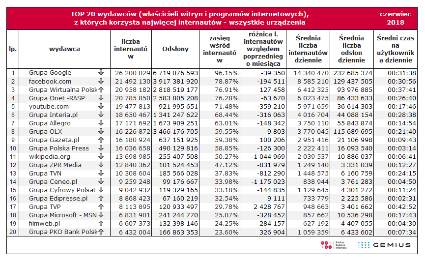 Liczebność próby: N=147547. Grupa objęta badaniem 7-75 lat. Do badania wykorzystano dane o strukturze internautów pochodzące z badania NetTrack Kantar MillwardBrown z I kwartału 2018r. i badania Maluchy z 2016r.