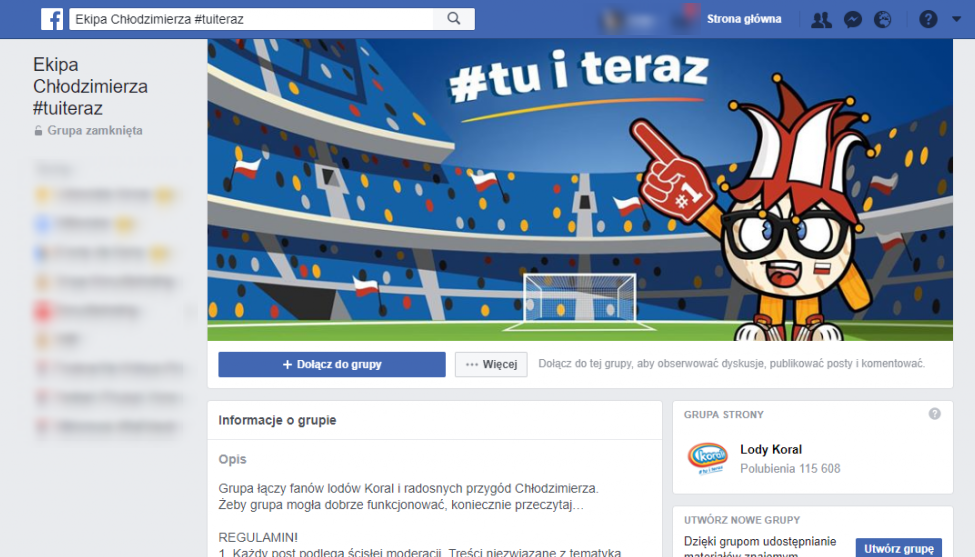 Lody Koral założyły grupę na Facebooku (Ekipa Chłodzimierza #tuiteraz), którą prowadził ich brand hero Chłodzimierz.