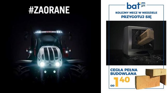 Mogłoby się wydawać, że marki budowlane i mundial to dwie różne bajki, nijak do siebie niepasujące. Jednak STEYR Traktory odnalazły się idealnie w piłkarskiej tematyce, w końcu polska reprezentacja zaorała temat. Natomiast Składy i markety budowlane BAT po przegranym meczu radziły kibicom dobrze „przygotować się na kolejne spotkanie i… cegłą rzucić w telewizor.”.