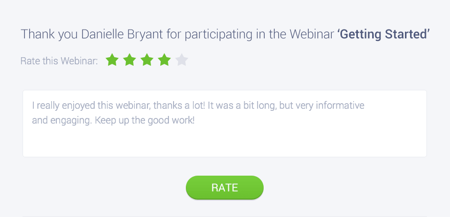Odpowiedzi na te pytania pozwolą ci ocenić jakość swojego wydarzenia, a tym samym lepiej zaplanować kolejne. Jednak, co najważniejsze, pytając o opinię, wysyłasz jasny przekaz: „Zależy mi na waszej opinii i chcę, aby moje webinary służyły wam jak najlepiej”.