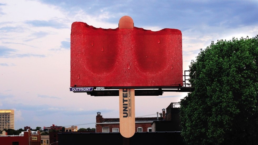 Reklamą jakiej firmy może być ogromny billboard w formie nadgryzionego w połowie loda na patyku? Sprawdźcie sami: billboard 3D, dzięki któremu poczujesz chłód.