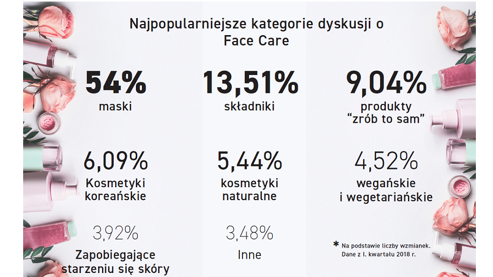 Branża kosmetyczna, w tym kategoria kosmetyków do pielęgnacji skóry twarzy, rozwija się niezwykle dynamicznie. Wyzwanie usystematyzowania informacji na jej temat podjęli się analitycy SentiOne, którzy dokonali analizy jakościowej oraz ilościowej rynku kosmetycznego. Na podstawie 2 475 182 internetowych wzmianek opublikowanych w sieci w pierwszym kwartale 2018 roku, poczynili liczne obserwacje, którymi dzielą się za pośrednictwem opracowania „Branża kosmetyczna w sieci”.