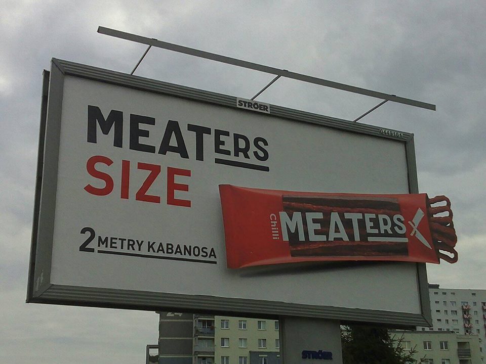 Marka pokazuje za pomocą billboardów 3D długość swoich kabanosów. Taki sposób zaprezentowania produktów Meaters idealnie oddaje to, co marka ma do zaoferowania swoim klientom.