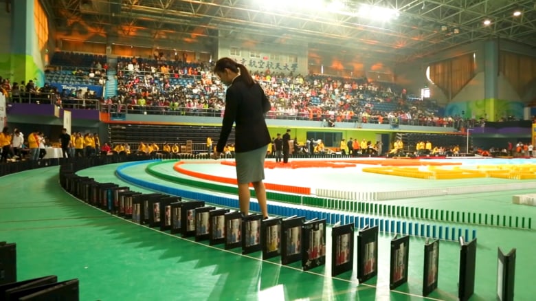 W rekordowym domino firmy Lenovo i BT/IT wykorzystano dokładnie 520 urządzeń i około 45 000 tradycyjnych kostek domino.