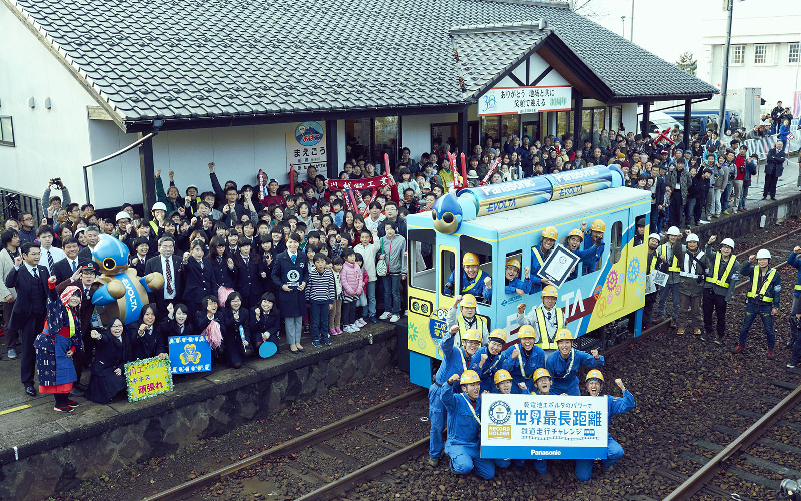 W 2013 roku Panasonic stworzył zabawkowy pociąg, który jeździł na najdłuższym torowisku, a to wszystko za pomocą jednej alkalicznej baterii AA. Dwa lata później, w 2015 roku firma podjęła się stworzenia pierwszego na świecie realistycznego pojazdu poruszającego się po torach kolejowych, napędzanego wyłącznie bateriami EVOLTA firmy Panasonic.