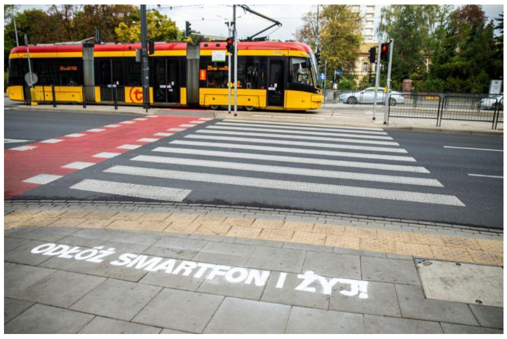 Druga część kampanii przenosi się na ulice. Tramwaje Warszawskie we współpracy z Zarządem Dróg Miejskich rozpoczęły znakowanie przejść dla pieszych w okolicy ponad 200 warszawskich szkół. W ciągu dwóch tygodni przed zebrami pojawią się duże napisy z hasłem „Odłóż smartfon i żyj”. Tymi działaniami twórcy kampanii prowadzą ofensywę przeciwko smartfonowym zombie, którzy na co dzień nieuważnie spacerują po ulicach z telefonami w dłoni.