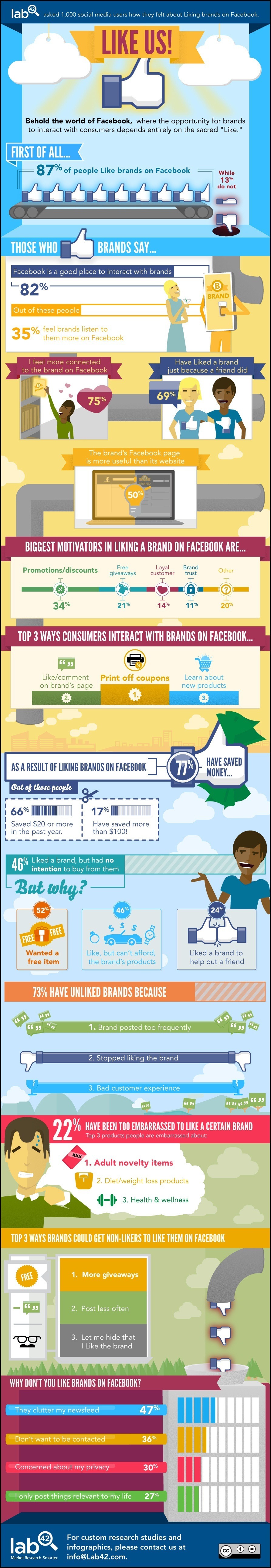 A co z naszego życia w social media mają marketerzy? Przede wszystkim w końcu dowiedzieli się, jak żyją konsumenci marek, co ich bawi, a co irytuje. Mogą też sprawdzić, czy konkretna marka ma dobrze zbudowany wizerunek, czy jednak strategia komunikacja została poprowadzona w ślepą uliczkę. Relacje użytkowników z brandami na Facebooku sprawdził Mashable.com. Okazuje się, że 50% z 1000 zapytanych użytkowników uznaje facebookowe profile brandów za ciekawsze niż ich strony internetowe. Około 82% respondentów stwierdziło, że fanpage na Faceboooku jest dobrym miejscem na interakcję z markami, a najlepszym z powodów do śledzenia marki na Facebooku jest możliwość drukowania kuponów i zniżek rabatowych (77% odpowiadających). Relacje konsumentów z marką nie jest więc bezinteresowna. Zawsze na końcu czai się korzyść na rzecz użytkownika , najlepiej materialna. Tak wyglądają relacje konsumentów z marką: