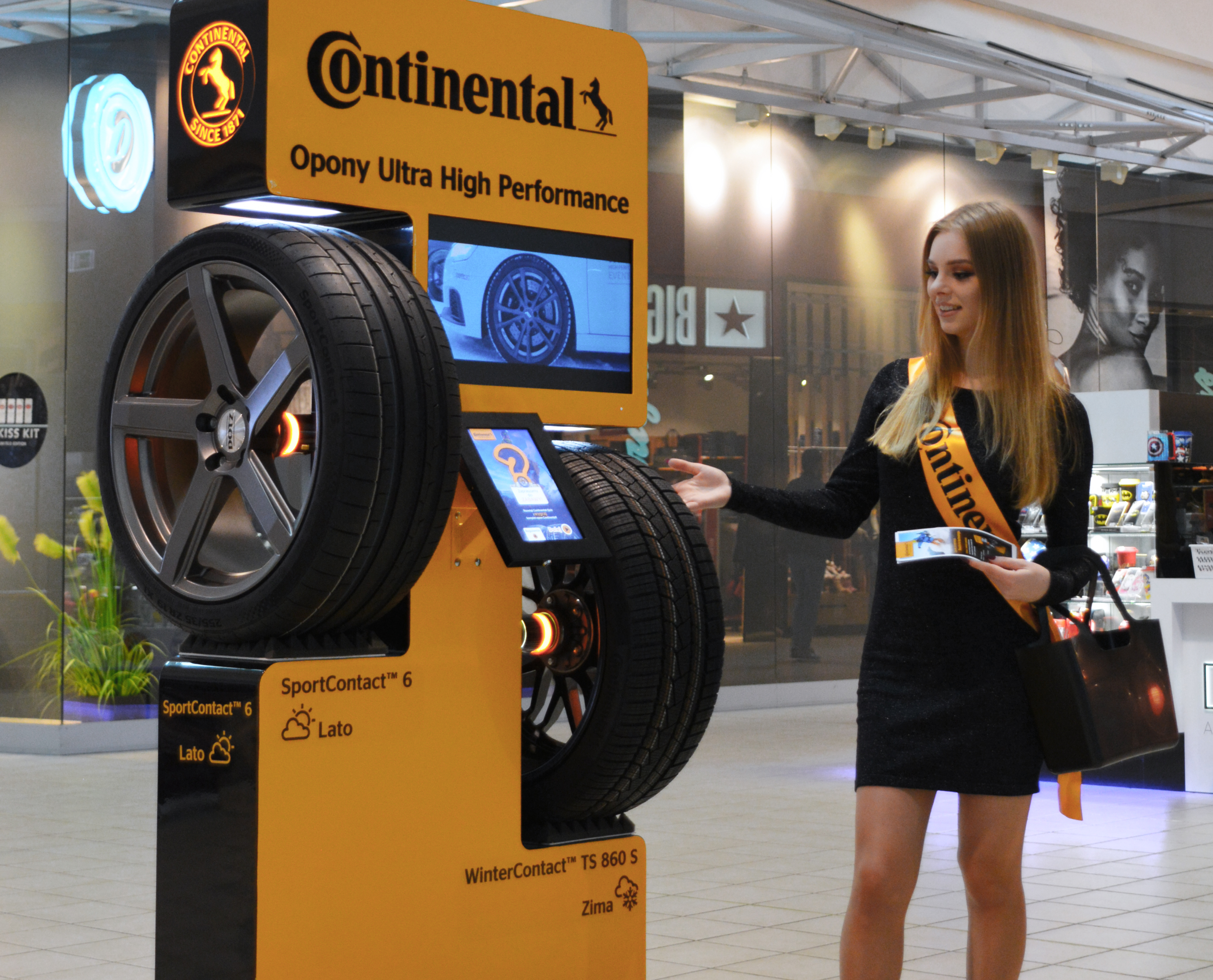 Opony są umieszczone na specjalnym, interaktywnym standzie. Klienci mogą na własne oczy przekonać się, jak wyglądają opony premium Continental. Dodatkowo mają możliwość rozwiązania na tablecie w specjalnie stworzonej aplikacji, quizu wiedzy o oponach. Głównymi nagrodami w quizie są vouchery warte 1500 złotych na zakup dowolnych opon Continental.