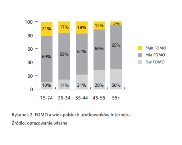 - na wysokie FOMO cierpi co piąty internauta z najmłodszej grupy badanych (15 – 24 lata);