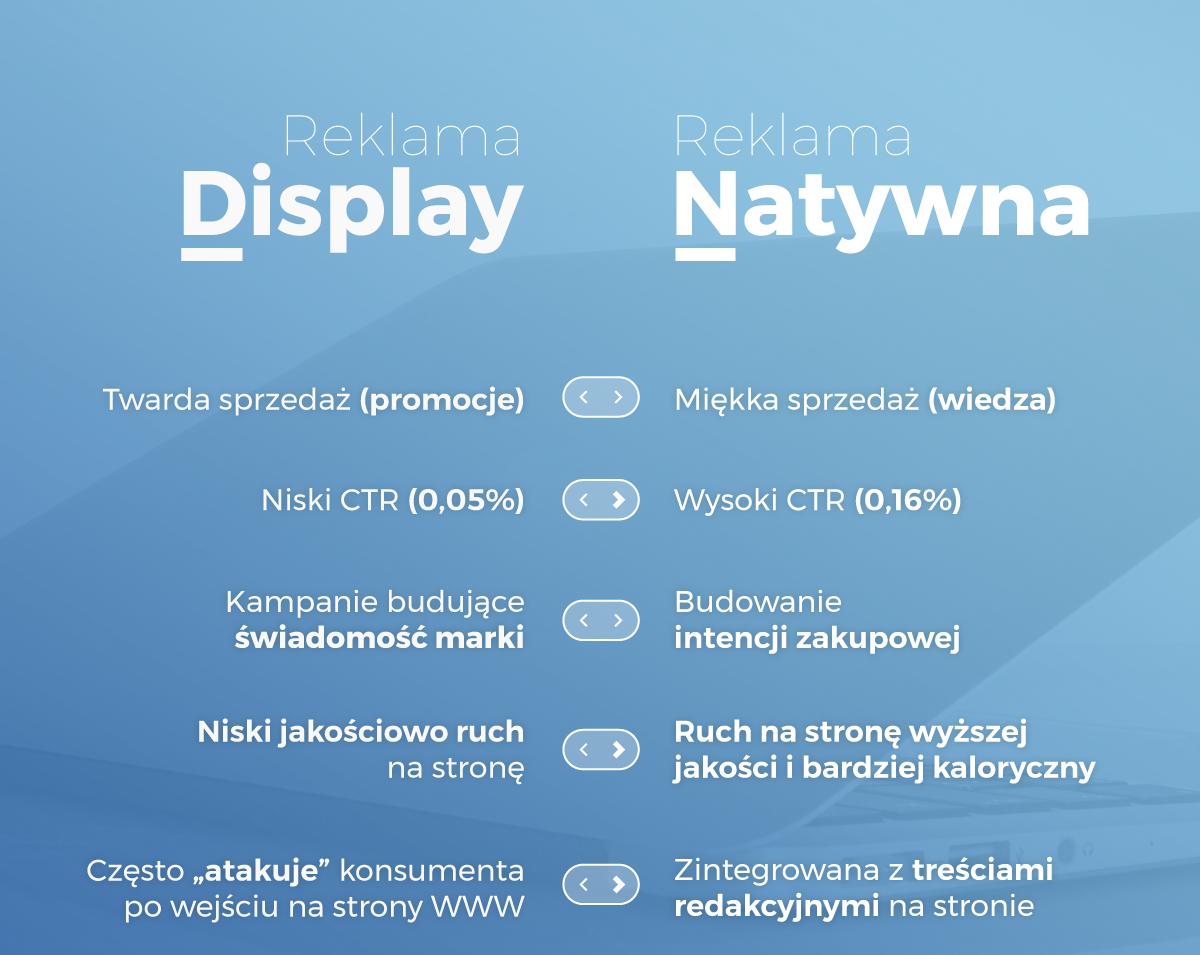 W USA w 2016 roku 56 procent wydatków na reklamę internetową było przeznaczonych na reklamę natywną. Do 2021 roku przewiduje się, że będzie to aż 74 procent. Aby lepiej zrozumieć ten trend, należy bliżej przyjrzeć się różnicom pomiędzy reklamą display a natywną.
