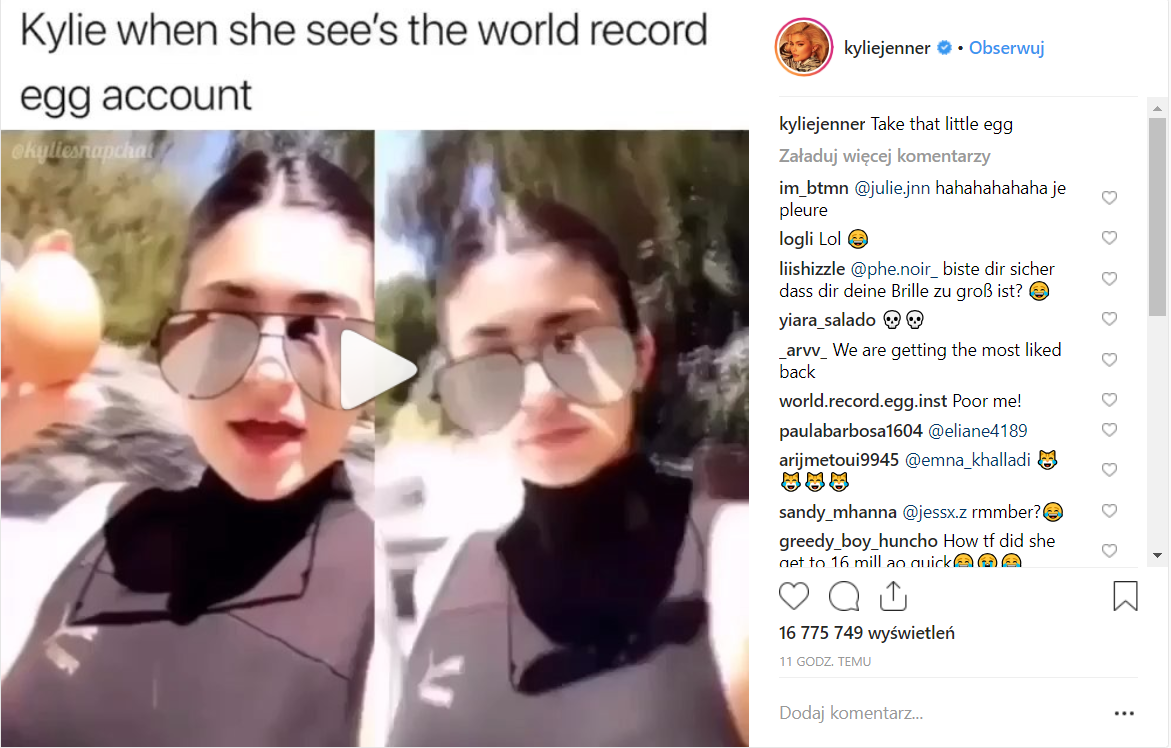 Konto World Record Egg zostało założone 4 stycznia i powstało jedynie po to, by pobić wynik dotychczasowego zwycięzcy najpopularniejszego zdjęcia, które należy do Kylie Jenner. Wpis Kardashianki informujący o narodzinach swojej córki Stormie zdobył ponad 18 mln polubień i dzierżył tytuł najpopularniejszego zdjęcia na Instagramie.