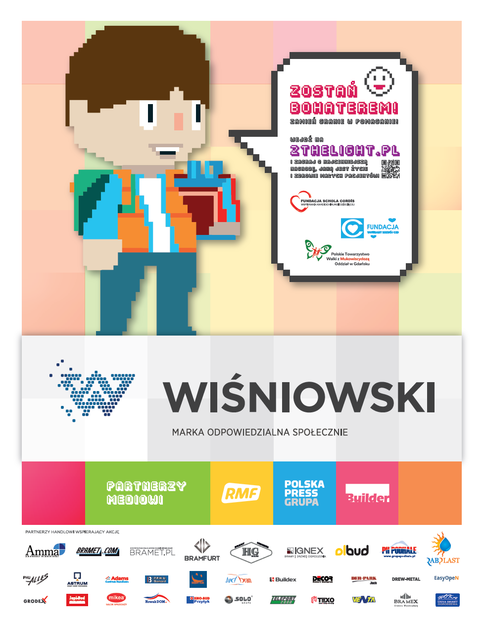 Celem akcji „Zostań bohaterem! Zamień granie w pomaganie” jest przekazanie środków finansowych wybranym placówkom oraz zwrócenie uwagi na problemy małych dzieci, walczących każdego dnia z chorobami onkologicznymi i mukowiscydozą. W stworzonej na potrzeby działań grze 2 THE LIGHT, gracze przemierzają trzy miasta, Kraków, Warszawę i Gdańsk, i zbierają monety, które następnie mogą przekazać na cele charytatywne. Każda wirtualny punkt oznacza realne 1 zł, które trafi do potrzebujących. Łącznie do zebrania jest 300 tys. zł, które następnie organizatorzy akcji, firma WIŚNIOWSKi wraz z partnerami handlowymi, przekażą wybranym placówkom.