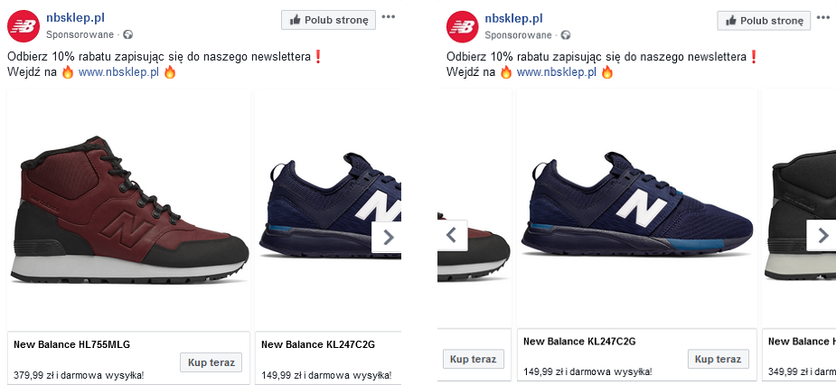 Reklamy dynamiczne pozwalają wyświetlać do 10 reklam w poszczególnym wpisie przy wyborze opcji reklamy karuzelowej. Najlepszym rozwiązaniem będzie wykorzystanie wszystkich 10 możliwości, aby zwiększyć szansę na konwersję.