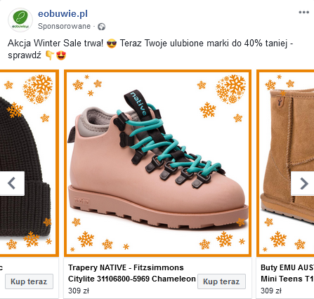 Reklamy dynamiczne pozwalają nam prowadzić także działania up-sellingowe i cross-sellingowe, czyli sprzedaż krzyżową produktów komplementarnych. Na przykład, kiedy ktoś oglądał lub kupił u Ciebie buty, możesz wyświetlić mu reklamę wkładek do butów, ochronnego impregnatu lub sznurówek.