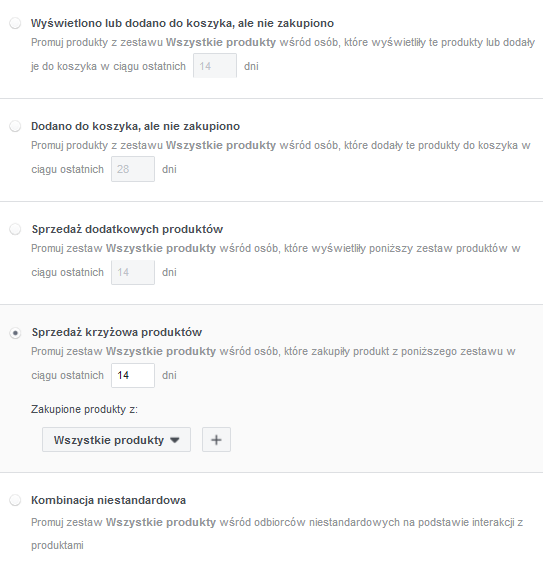 Podczas prowadzenia wielu kampanii z dynamicznymi reklamami produktowymi zawsze istnieje obawa o nakładanie się odbiorców. W takich przypadkach twoje reklamy konkurowałyby ze sobą, powodując spadek skuteczności. Pamiętaj o tym, aby w przypadku prowadzenia wielu kampanii, wykluczyć w nich powtarzające się grupy, by nie obniżać skuteczności.