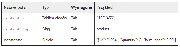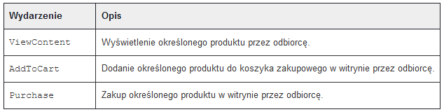 Standardowy kod piksela musimy uzupełnić o zdarzenia standardowe, które pomogą nam jeszcze dokładniej śledzić skuteczność prowadzonych działań, a także parametry: content_ids oraz content_type.