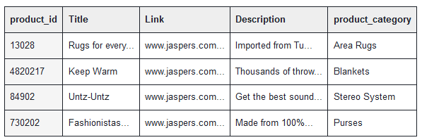 Dodatkowo możemy uzupełnić katalog o takie elementy, jak: rozmiar, kolor, materiał, wzór. Poniżej zobaczysz, jak może wyglądać przykładowy katalog w pliku CSV, czyli taki, który został przygotowany np. w Excelu (pełen przykład znajdziesz tutaj):
