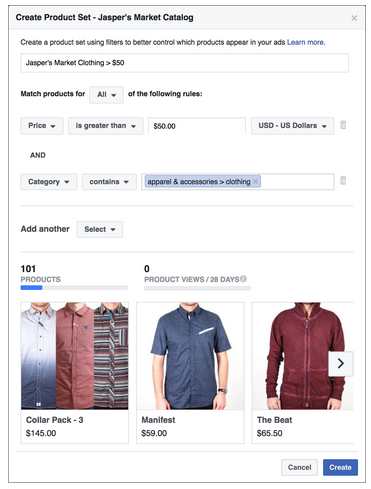 Kiedy chcesz stworzyć dane reklamy, możesz skorzystać z opcji Reguł Niestandardowych, aby dokładniej przefiltrować duży zbiór produktów. Dzięki temu przygotujesz zestawy reklam dla produktów, których cena zaczyna się od konkretnej kwoty np. od 50 zł i wyświetlisz je osobom, które odwiedziły podstrony z przedmiotami w podobnym zakresie cenowym. Reguły Niestandardowe znajdziesz w Menedżerze reklam: