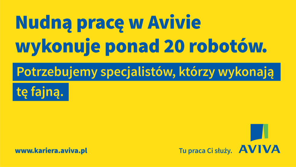 „Nudną pracę w Avivie wykonuje ponad 20 robotów. Poszukujemy specjalistów, którzy wykonają tę fajną” – tak przez cały styczeń Aviva zachęcała do aplikowania do pracy w swoim biurze w Warszawie.