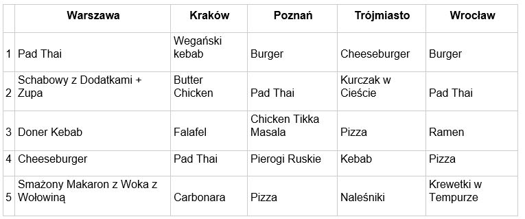 - Pad Thai, wegański kebab oraz burgery – oto 3 najchętniej zamawiane dania w Warszawie, Krakowie, Poznaniu, Wrocławiu i Trójmieście,