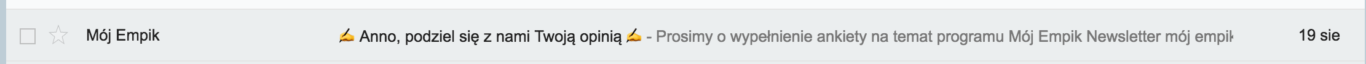 Ryc. Przykład preheadera i personalizacji (w temacie wiadomości). Dzięki tym dwóm elementom, wiemy, czego spodziewać się po otworzeniu e-maila.