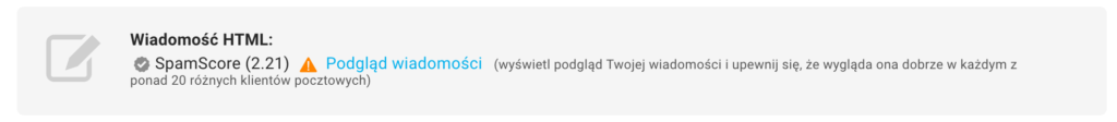 Przy kreacjach sprzedażowych dla e-commerce średnio otrzymujemy ocenę około 2 punktów, czasem trochę mniej, czasem więcej. To bezpieczny wynik. Jeśli jednak otrzymamy ocenę na poziomie 4,5-5 punktów, to możemy mieć pewność, że nasza wiadomość trafi do SPAMU.