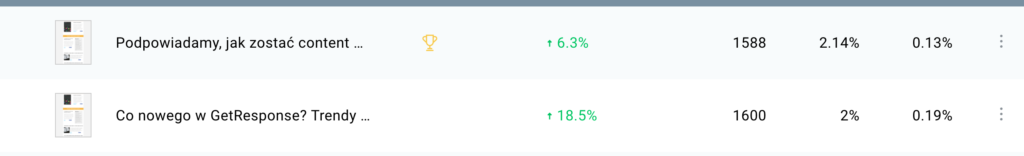 Ryc. Tak wygląda przykładowa ocena wiadomości w kreatorze GetResponse