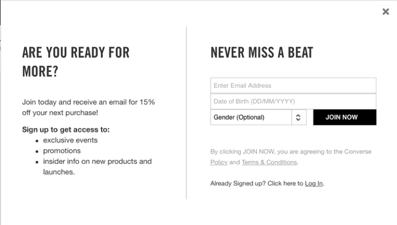 Oto przykład od marki Converse: