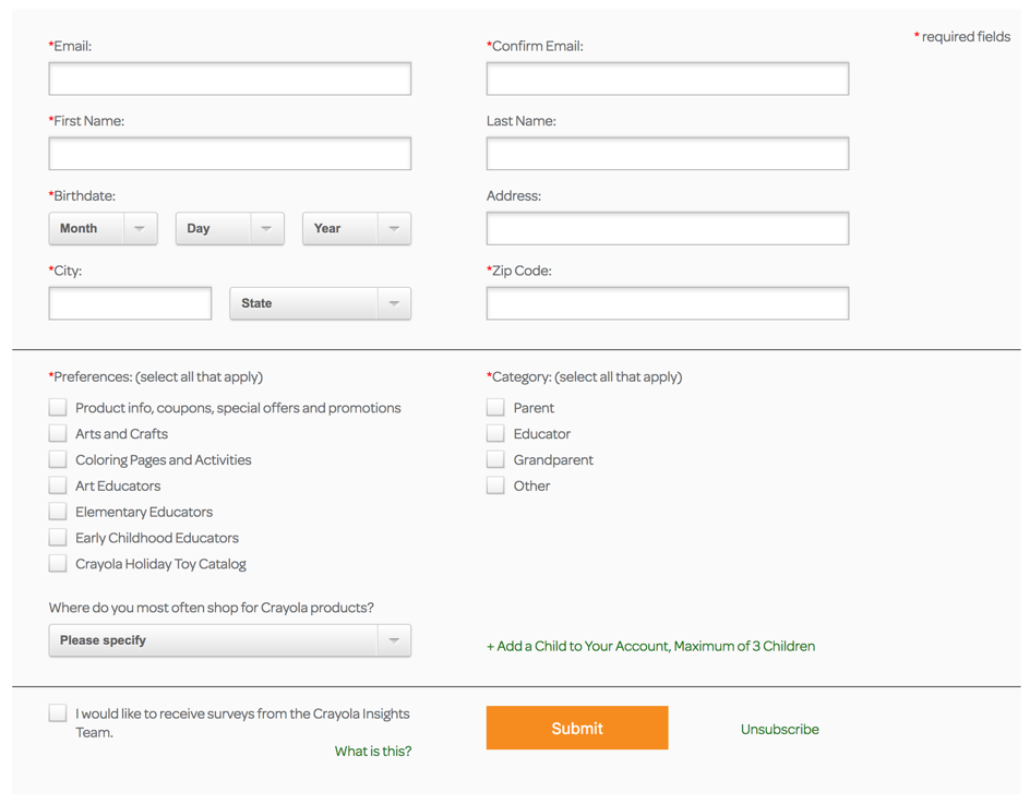 Niektóre firmy, jak Crayola, z powodzeniem wykorzystują dłuższe formularze: