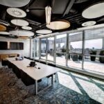 Ściany są szare, ale dzięki wielkim przeszkleniom, połączeniom drewna z betonem i ogromnej ilości świetlików, które rozjaśniają całą przestrzeń – jest nowocześnie, ale miło. Dodatkowo świetliki są tak rozmieszczone, że o każdej porze dnia tworzą na ścianach grę światła i sprawiają, że biuro najciekawiej wygląda podczas zachodów słońca.