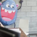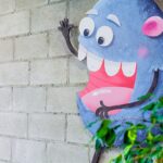 Patio przed biurami urządzone jest w stylu japońskim, z wielką ilością drobnych kamieni, z których często układamy szalone wzory. Wokół zieleń, ale grilla niestety robić tam nie można… A Trzask? Towarzyszył nam od zawsze. Jego dwa wielkie wykroje z wysokogatunkowej tektury zdobią betonowe ściany studia. Dołożyliśmy starań, aby w pełni pozytywnie wpływał na naszą pracę, dlatego zainstalowaliśmy w nim magnetyczne gałki oczne, które przekręcamy w zależności od naszego humoru – to taki znak dla odwiedzających.