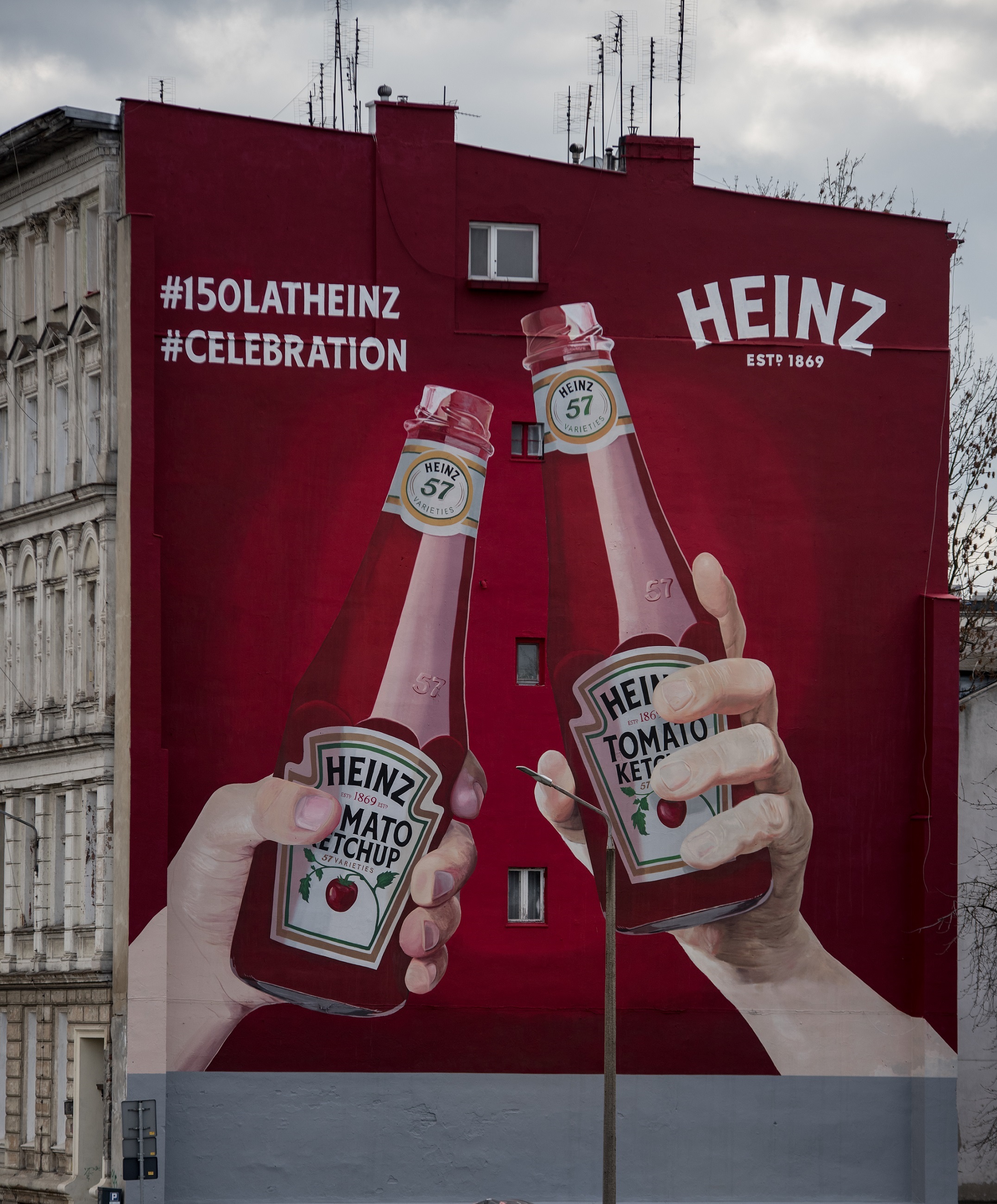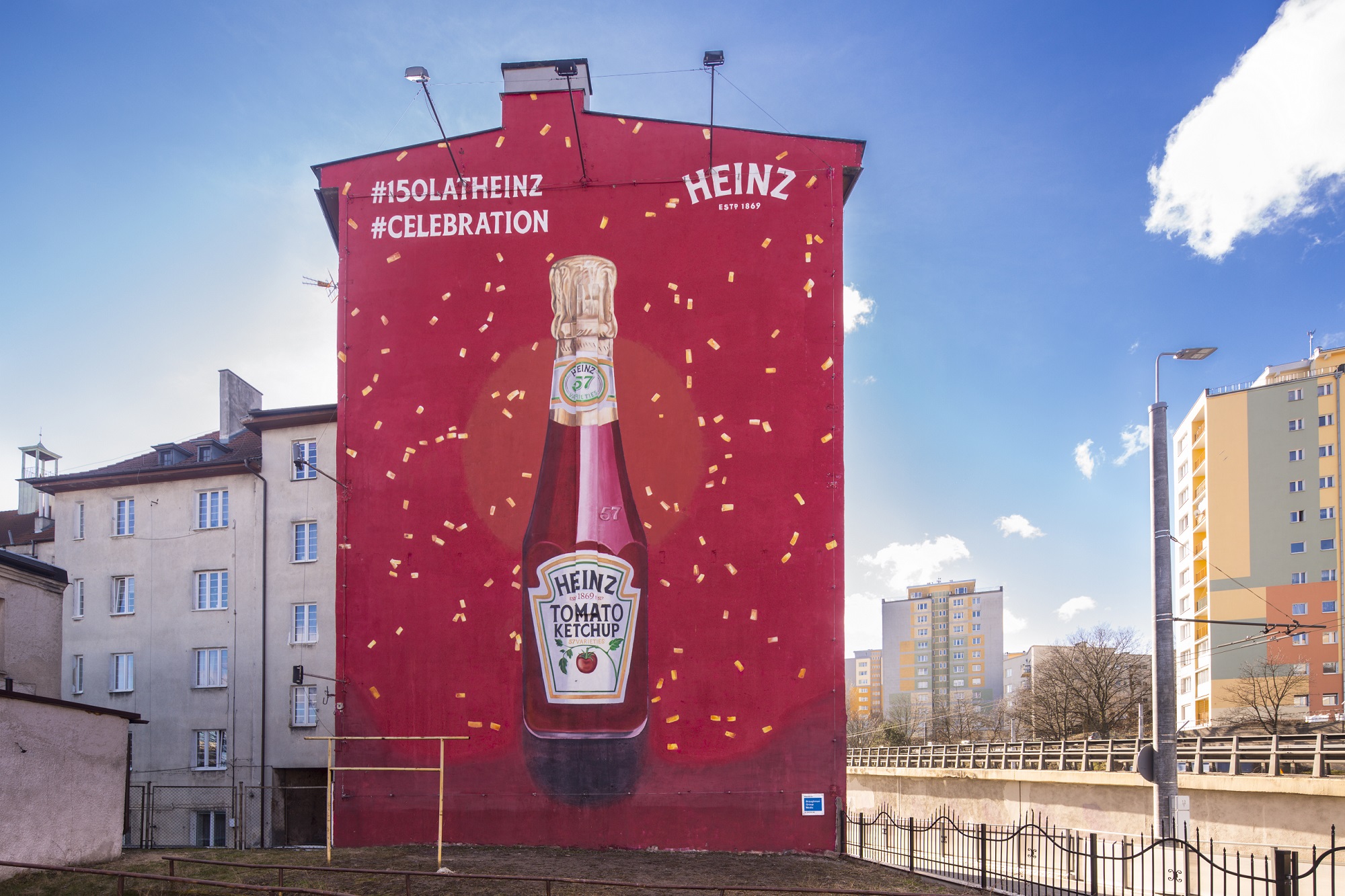 Heinz na stałe zagościł w kuchniach na całym świecie, stał się częścią wyposażenia astronautów NASA, a jedna z gwiazd współczesnej muzyki, Ed Sheeran, nawet wytatuował na swoim ramieniu etykietę „Heinz 57”. Pomimo śmiałych posunięć i rewolucyjnych rozwiązań wprowadzanych w firmie na przestrzeni czasu, niektóre aspekty marki pozostały niezmienne. Od 150 lat ketchup Heinz jest produkowany z użyciem zaledwie pięciu składników, a jego receptura jest pilnie strzeżoną tajemnicą. W przeciwieństwie do murali – te na szczęście te możemy oglądać wszyscy.